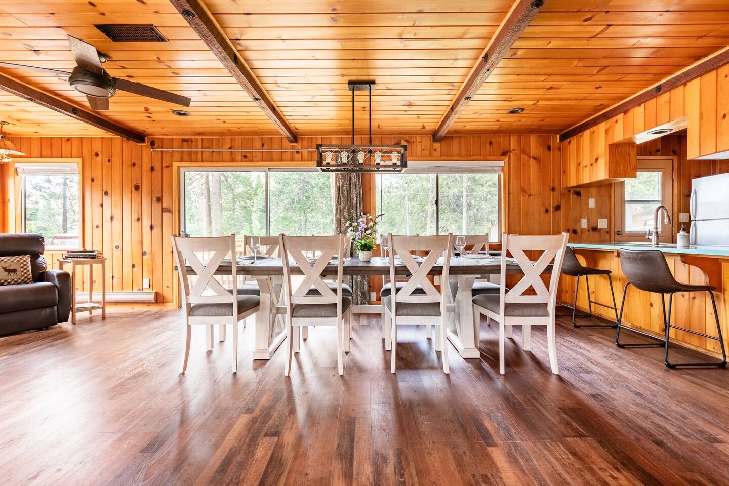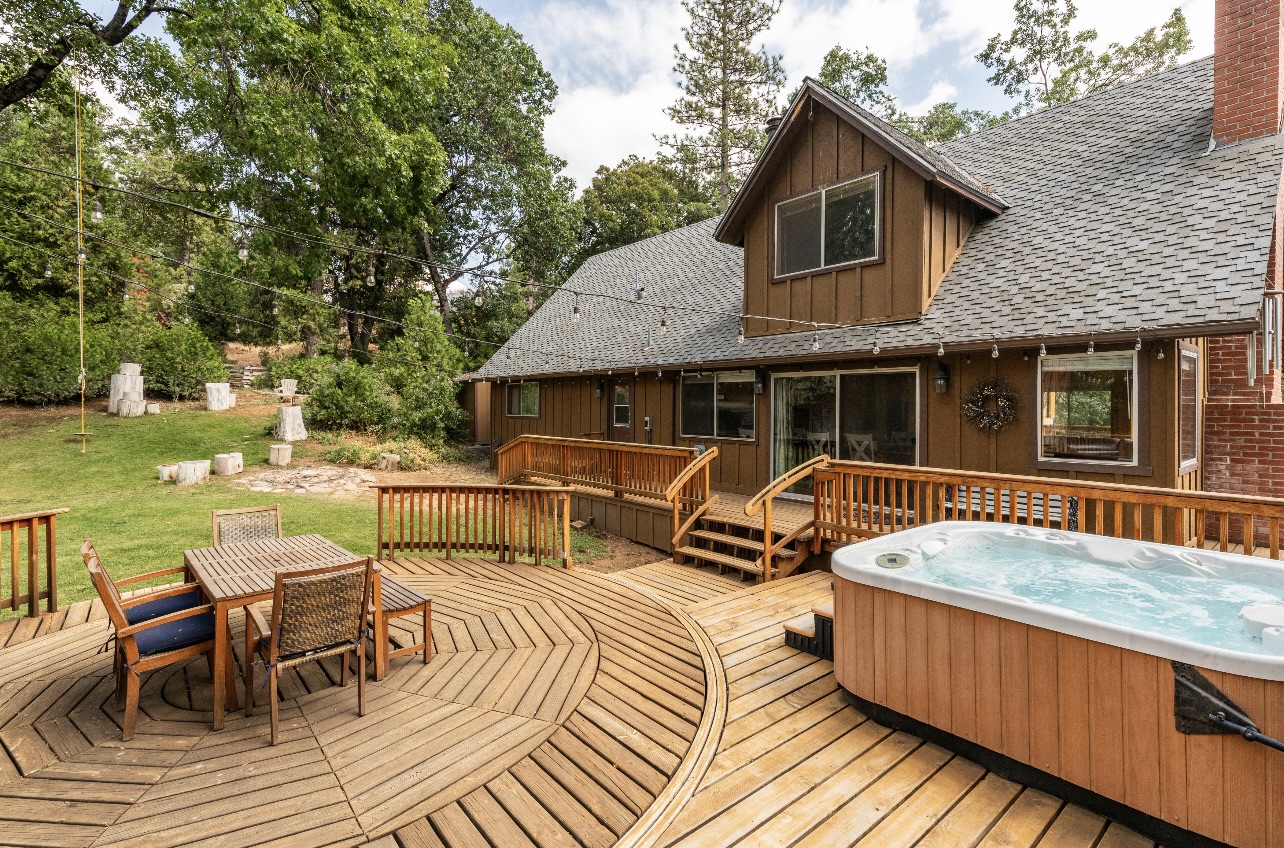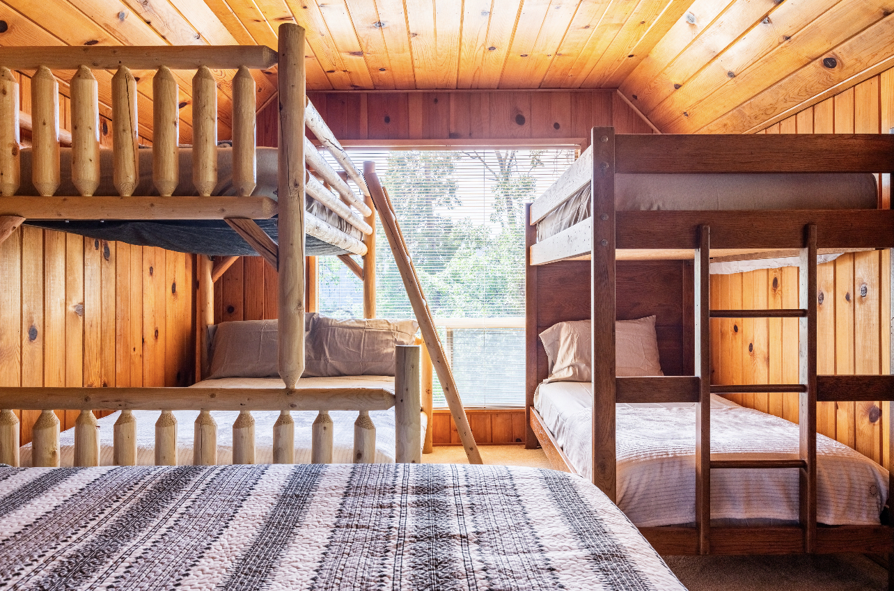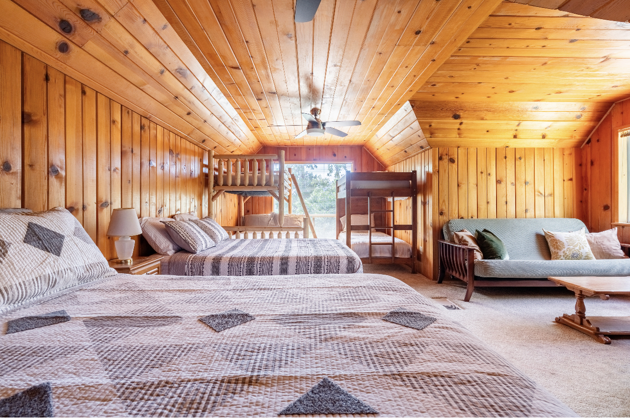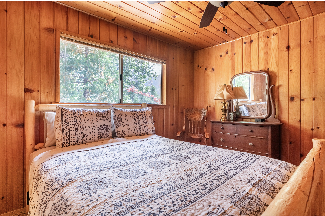 Whether you’re planning a weekend escape, a peaceful retreat, or a family gathering, Tule Haven Cabin is the perfect haven for large families and groups to relax and reconnect. The cabin itself is cozy yet spacious, featuring a rustic charm that blends seamlessly with its natural surroundings. The interior boasts an inviting living area, complete with a large couch to gather on, a wood-burning fireplace, and a recliner to rest peacefully -- perfect for cozy evenings or simply unwinding with a book. With a fully equipped kitchen, you have the convenience of preparing your own meals. There's a large dining table with 8 seats and two more can be added. Perfect for large family meals. Alternatively, you can savor delicious local cuisine at Pierpoint Bar and Grill just a mile away. There are four bedrooms - Two bedrooms downstairs and two upstairs. One of the upstairs bedroom is a versatile space, featuring a combination of two queen-sized bed and two sets of bunk beds! This setup is perfect for friends or siblings sharing a room, providing flexibility and comfort for a variety of sleeping preferences. In the backyard you will find a spacious deck, a grill, an amazing hot tub, and a large outdoor dinning table. You can soak in the beauty of the surroundings, have dinner outside, relax in the hot tub, watch the kids (or adults) run free on the grass, enjoy yourselves on the swings, and build unforgettable memories!